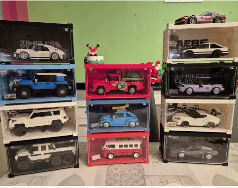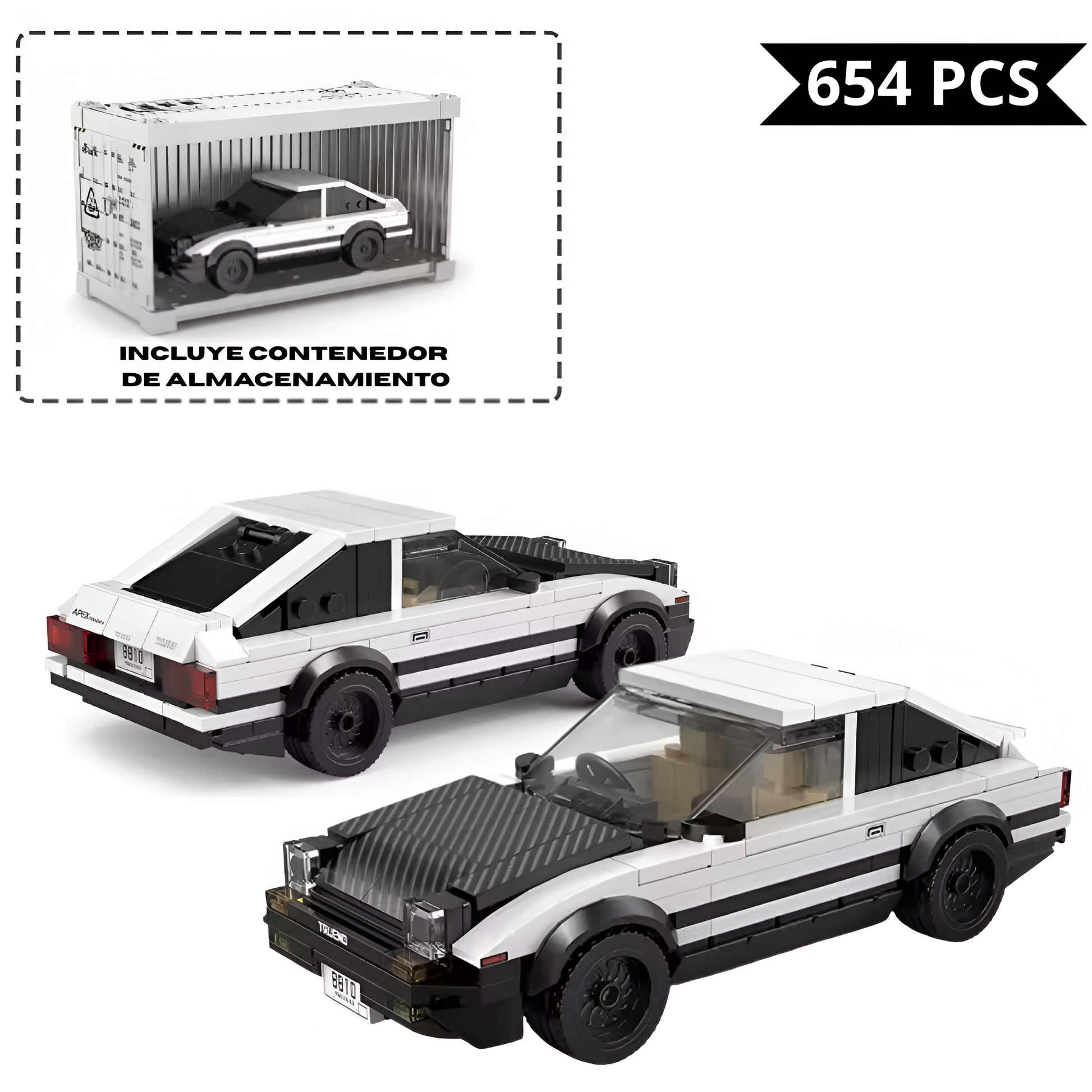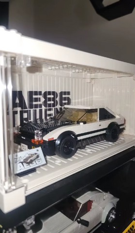 Nuestro Pack incluye una caja tematizada del famoso Toyota Trueno AE86, junto al coche de construcción para que lo montes bloque a bloque y, además, un expositor en forma de contenedor industrial de REGALO para exponer tu obra de arte.