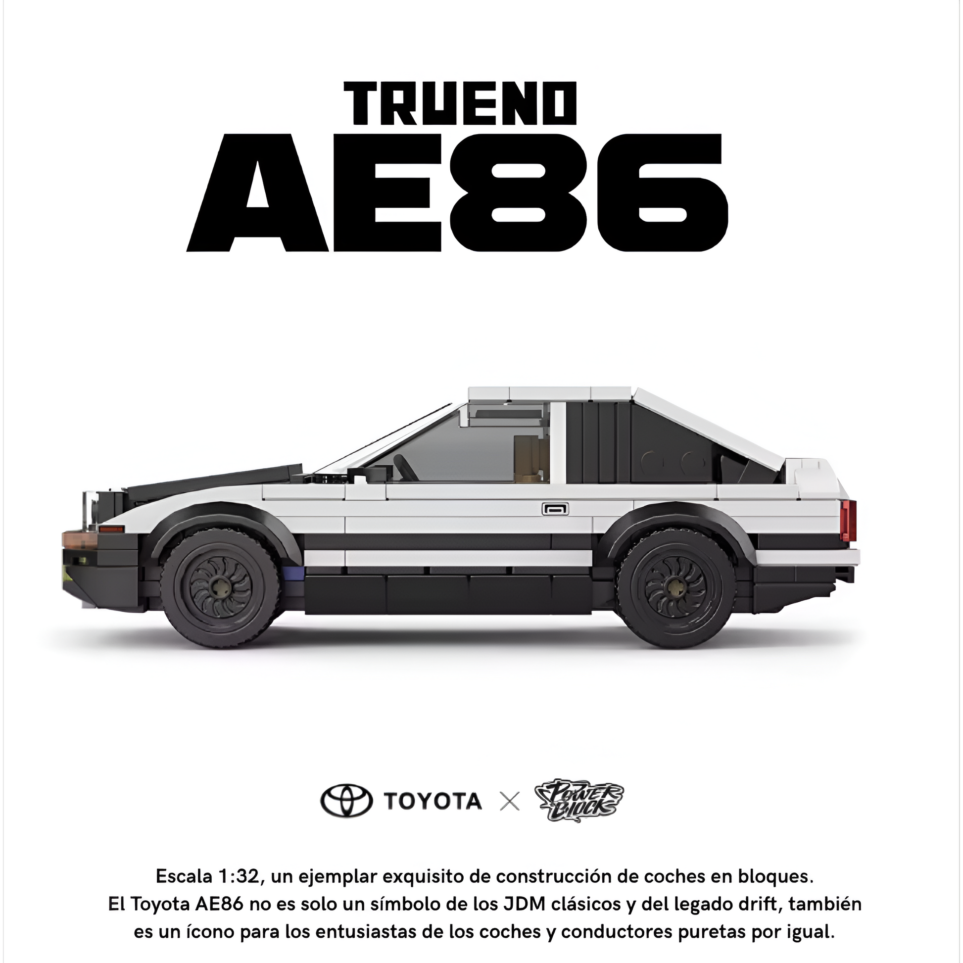 No estás comprando un simple modelo: estás reviviendo la historia del drift pieza a pieza. Cada bloque encaja con precisión milimétrica, recreando el icónico Toyota AE86 Trueno.